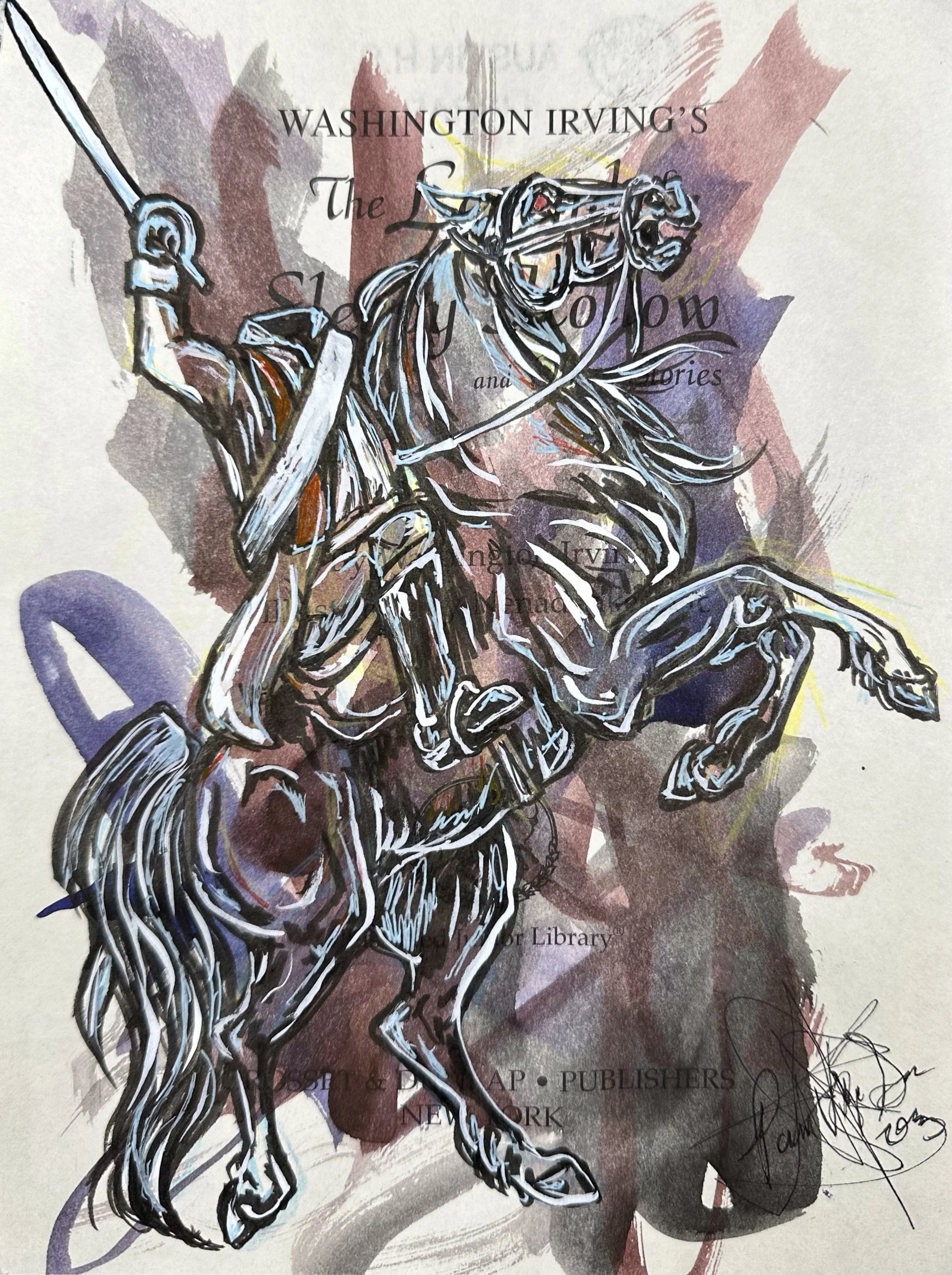 The Legend of Sleepy Hollow - Watercolor & ink on recycled book paper 2022 *SOLD*
