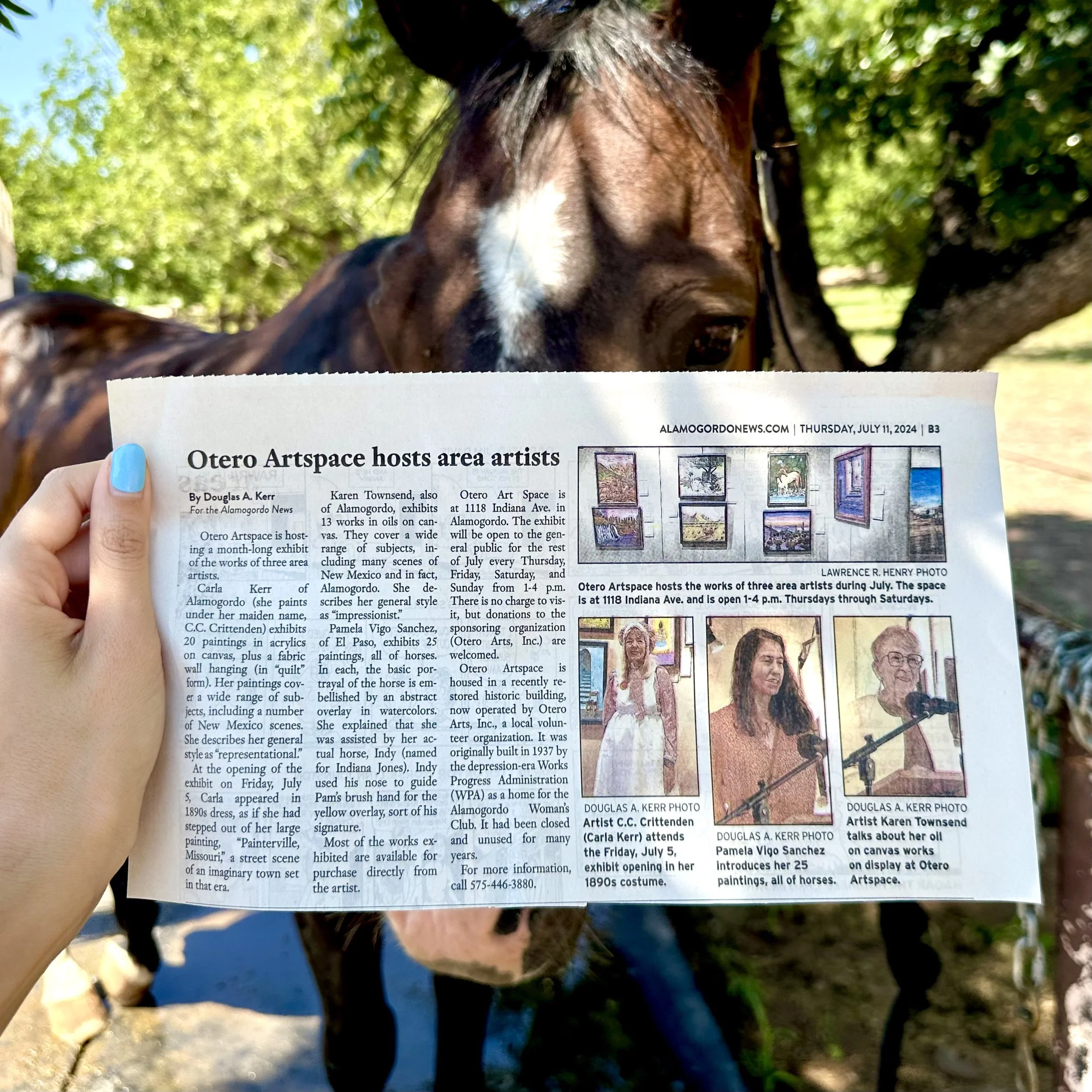 Newspaper article on the Emerging Artist Exhibition held at the Otero Artspace in Alamogordo, New Mexico. Written by Douglas A. Kerr for the Alamogordo News for Thursday, July 11 2024